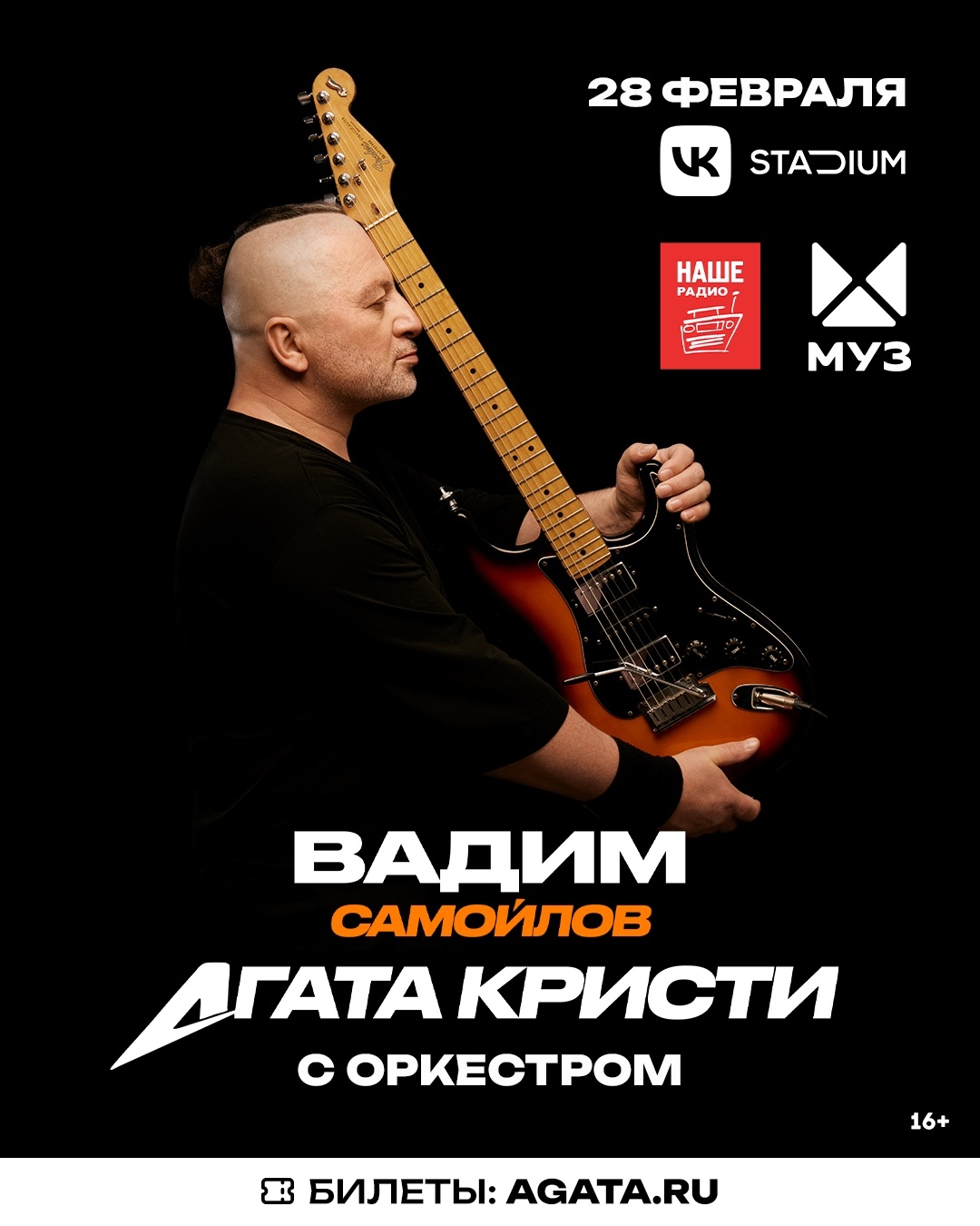 Вадим Самойлов – основатель и лидер группы «Агата Кристи», один из самых влиятельных музыкантов постсоветского пространства, 28 февраля выступит в Москве, на сцене VK Stadium с симфоническим оркестром. 🎟 Билеты: https://agata.ru/msk Это песни, с которыми выросли миллионы. Они звучат в любимых фильмах, их поют под гитару во дворах, они гремят по радио и телевидению. Эти тексты и мелодии знают наизусть несколько поколений — и подпевают им до сих пор. В них фирменный почерк: мистическая энергетика, философская лирика, новаторство и синтез жанров. Приглашаем насладиться грандиозным шоу, разрывающими эмоциями, глубокими смыслами и проникающей в сердце музыкой в исполнении команды великолепных музыкантов и художников по видео, свету и звуку. Хиты «Агаты Кристи» с оркестром. Это не вечер…